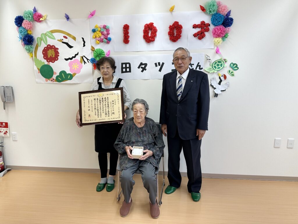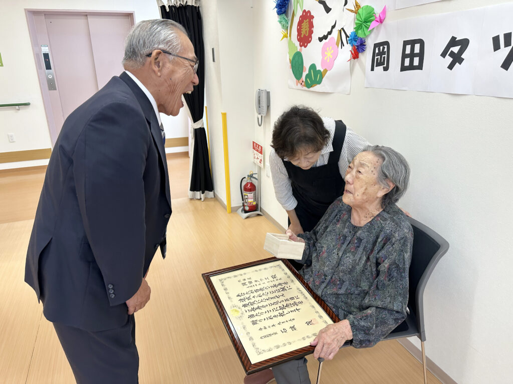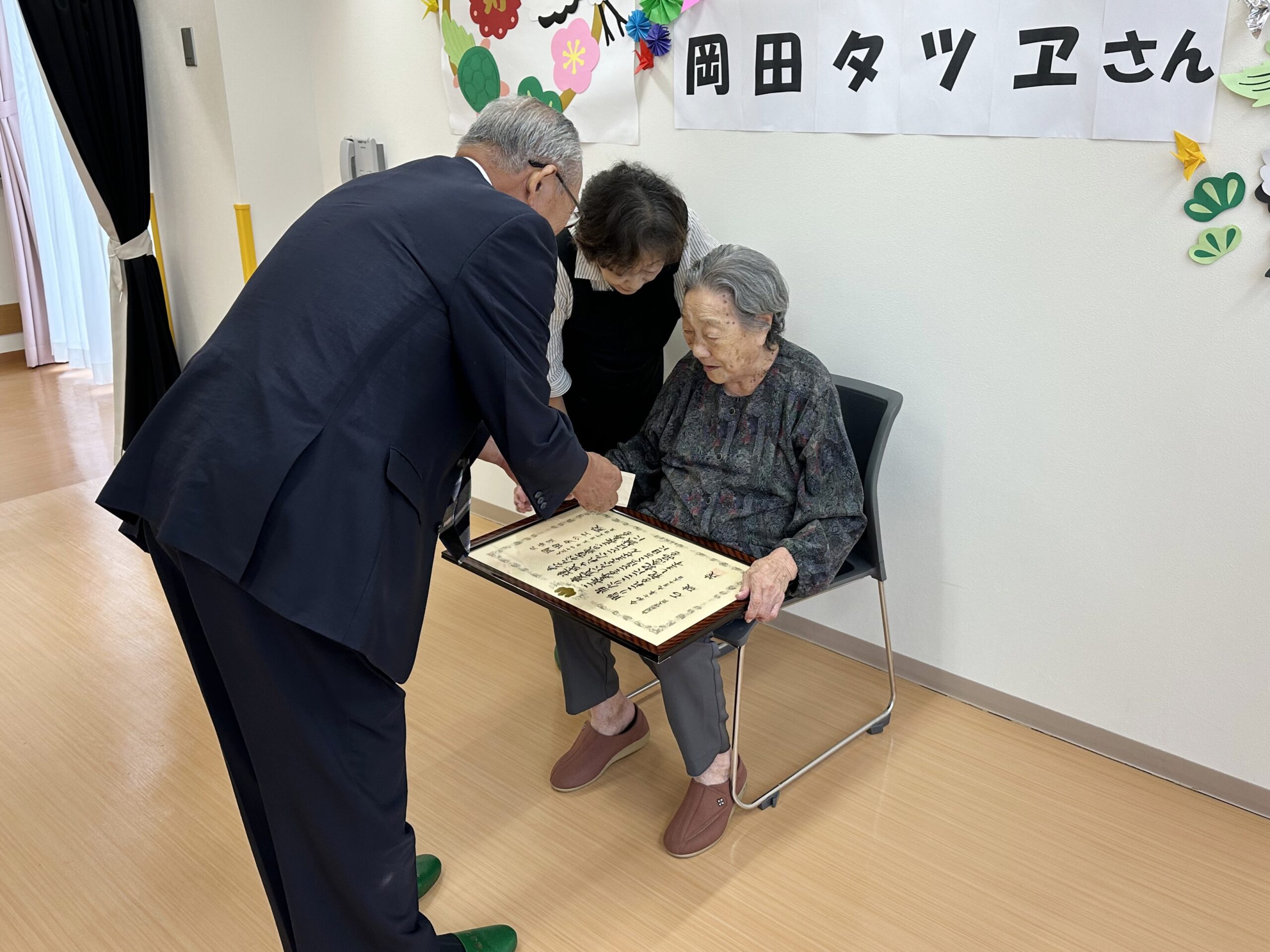 高橋町長より賞状と銀杯が贈呈され、ご家族も入れて写真撮影させていただきました😊