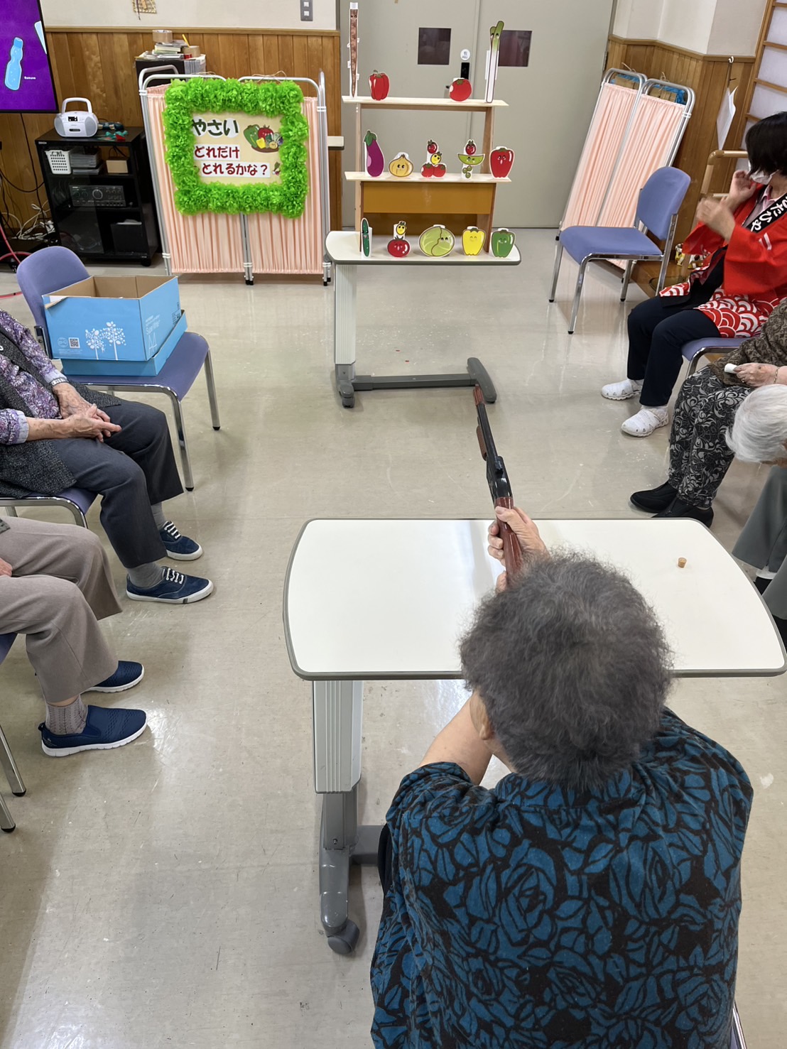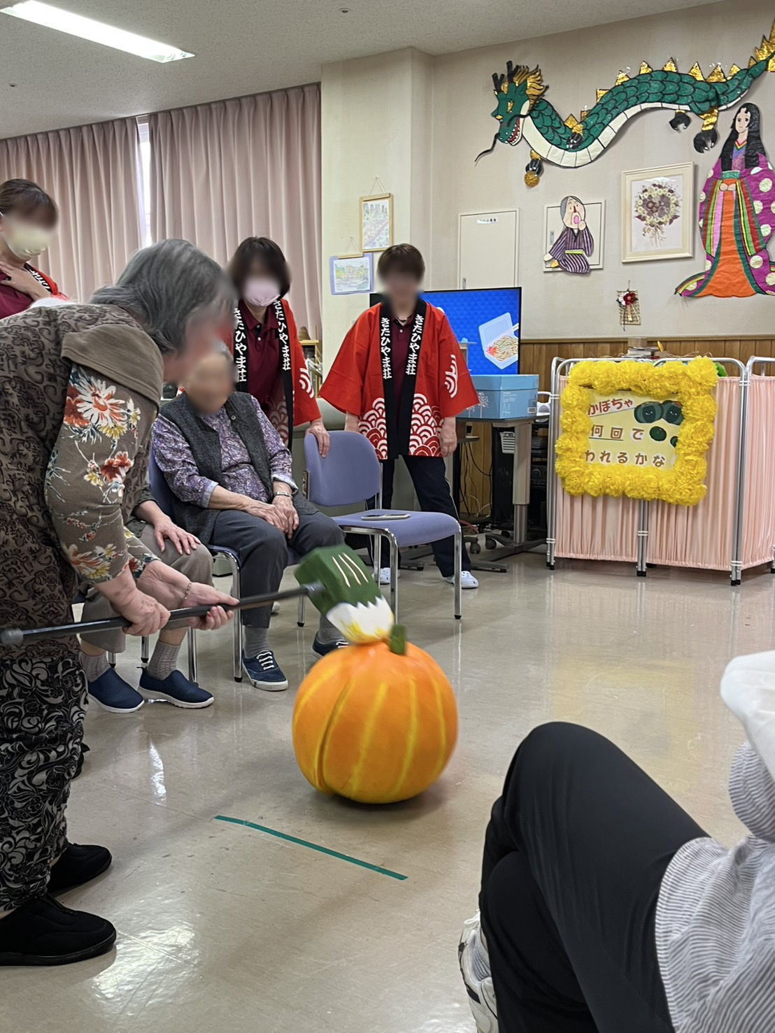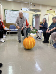 射的、さかな釣りゲーム、秋にちなんでスイカ割ならぬかぼちゃ割りを行いました✨