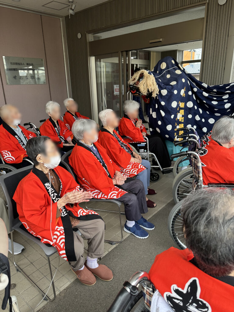 厄払いに獅子舞さんに頭をかじっていただき、入居者の皆さまは大喜びでした😆